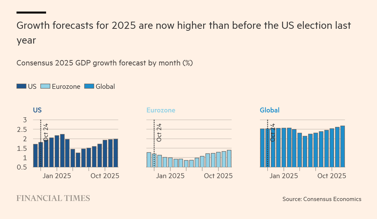 There’s been a lot of doom and gloom about the world economy this year, but annual growth is actually expected to come in higher than anticipated last autumn, Tej Parikh writes in the Financial Times: