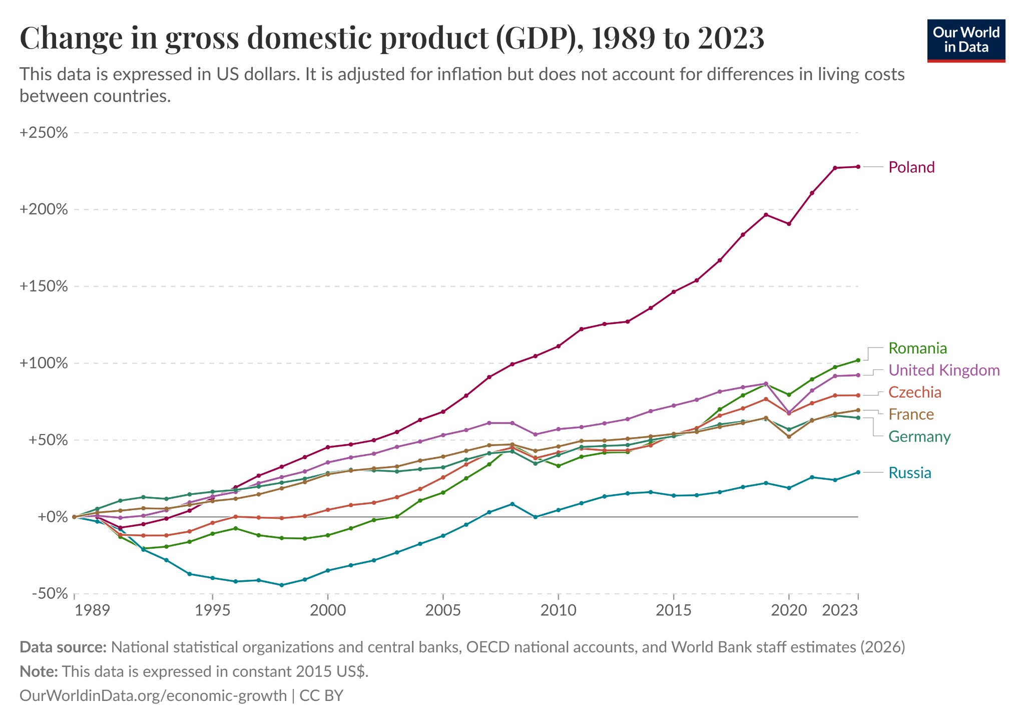 And in terms of growth, Russia and the other Eastern block countries grew this period much faster than the UK, for example (not surprising, as they started out a lot poorer, and still haven’t quite caught up)